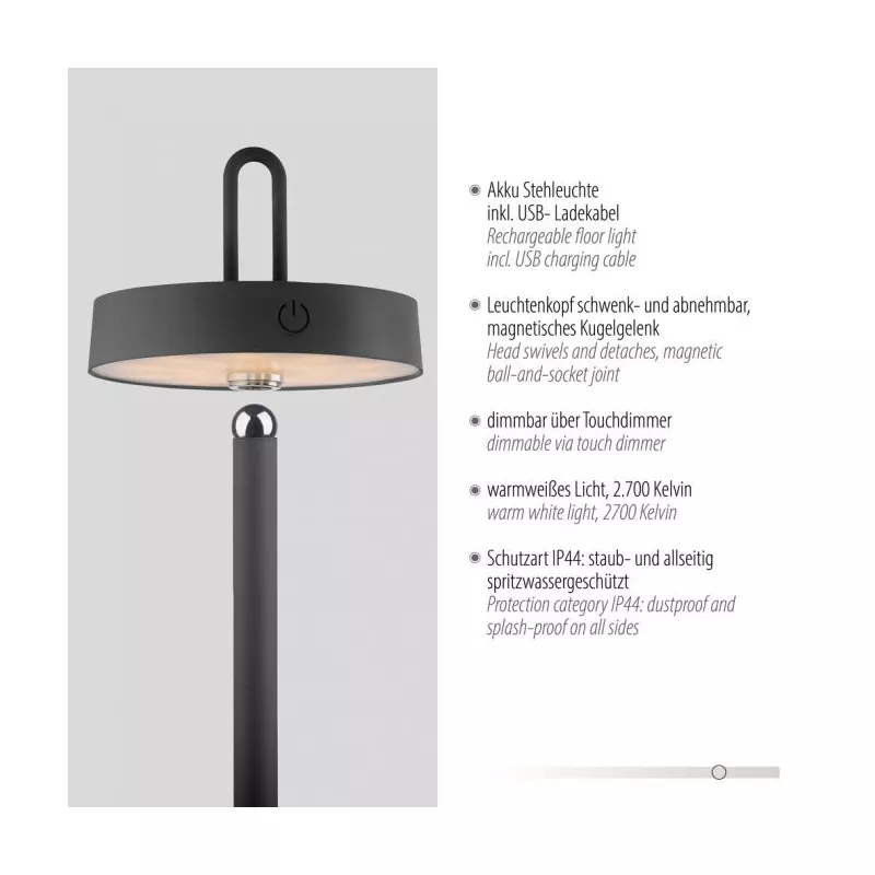 19311-18 AMAG LAMPA PODŁOGOWA/ZEWNĘTRZNA BEZPRZEWODOWA CZARNY