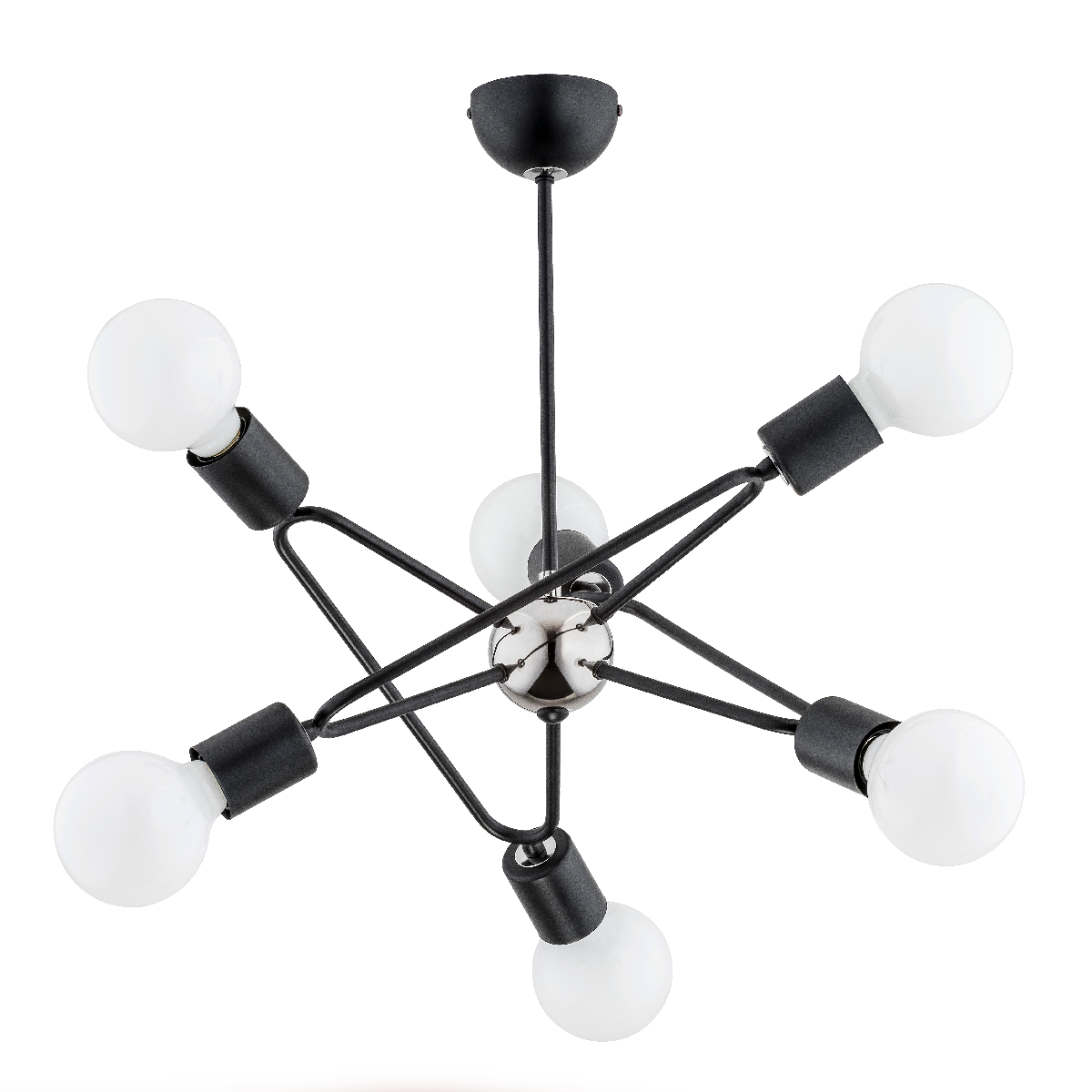Nowoczesna lampa sufitowa BARI w eleganckiej czerni to połączenie stylu i funkcjonalności. Dzięki aż 6 punktom świetlnym E27 możesz zastosować własne żarówki – LED, filamentowe lub energooszczędne – tworząc jasne, równomierne i przyjemne oświetlenie w salonie, jadalni, kuchni, sypialni czy przedpokoju.