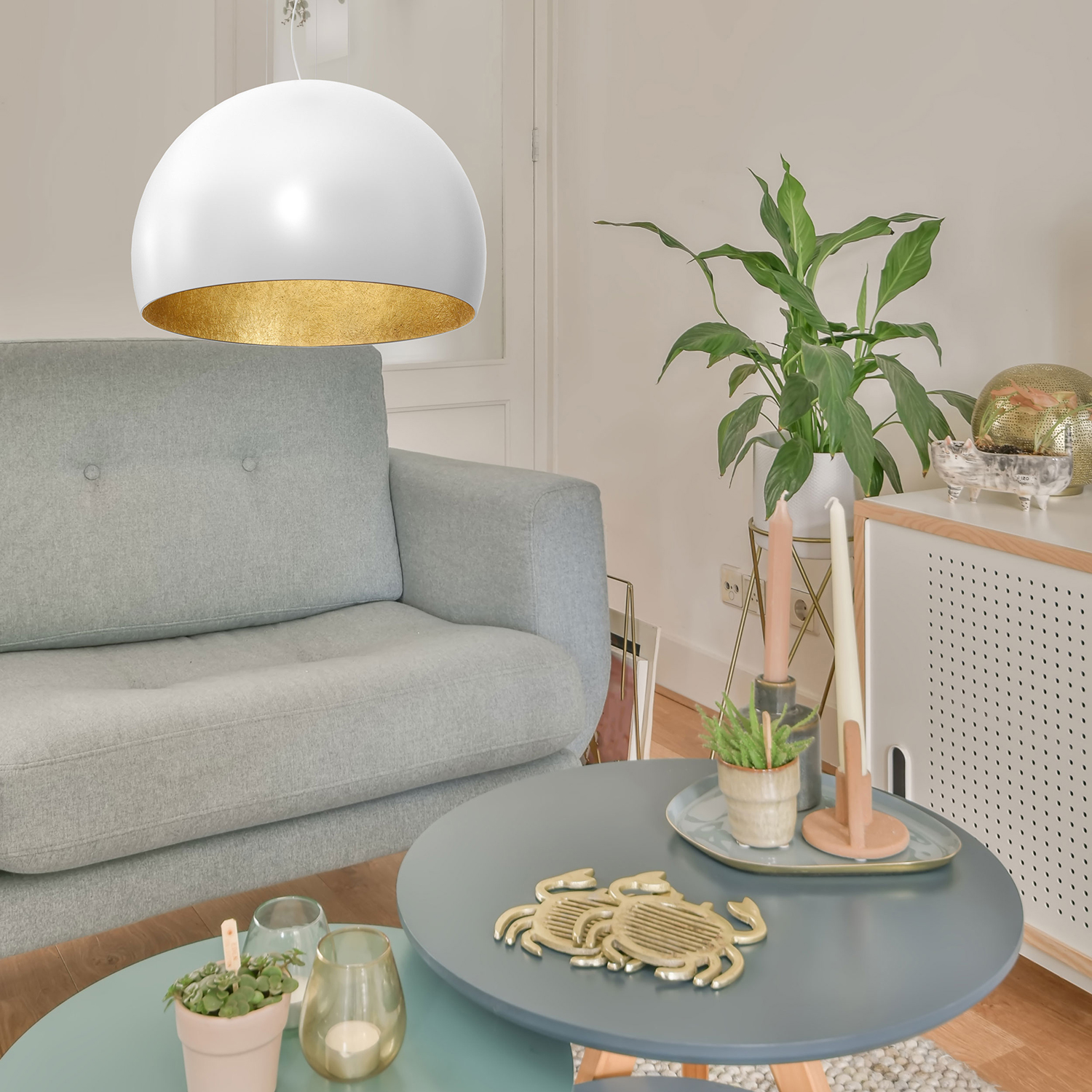 Lampa wisząca COMPO 3/4 BOOL biały-złoty 1×E27 1680 to doskonały wybór dla osób, które szukają funkcjonalnego i designerskiego oświetlenia z eleganckim wykończeniem.