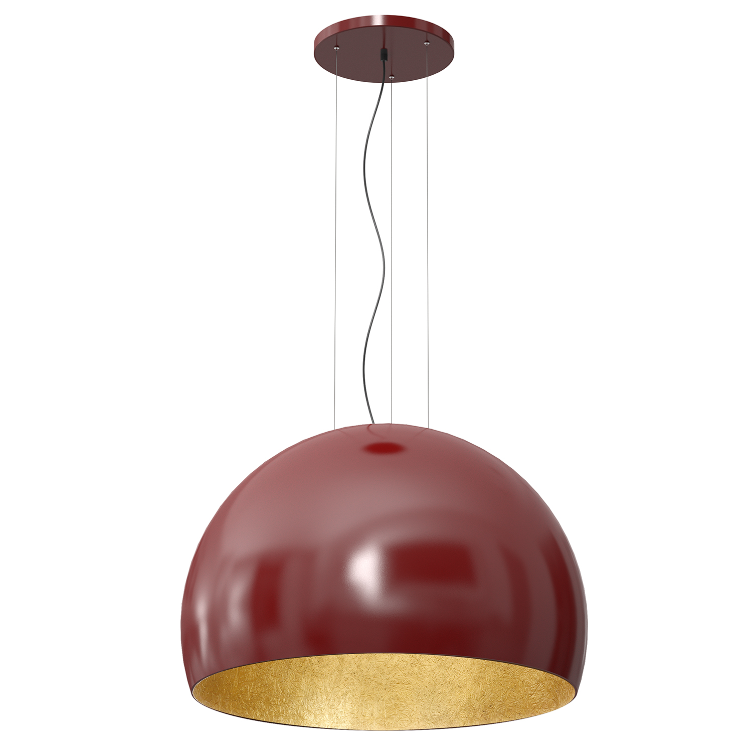 Lampa wisząca COMPO 3/4 BOOL 1690 to wyjątkowe oświetlenie dekoracyjne, które przyciąga uwagę eleganckim zestawieniem kolorów oraz nowoczesną formą klosza. Burgundowa powierzchnia w połączeniu ze złotymi elementami tworzy efektowny kontrast, nadając wnętrzu wyrafinowany i stylowy charakter.