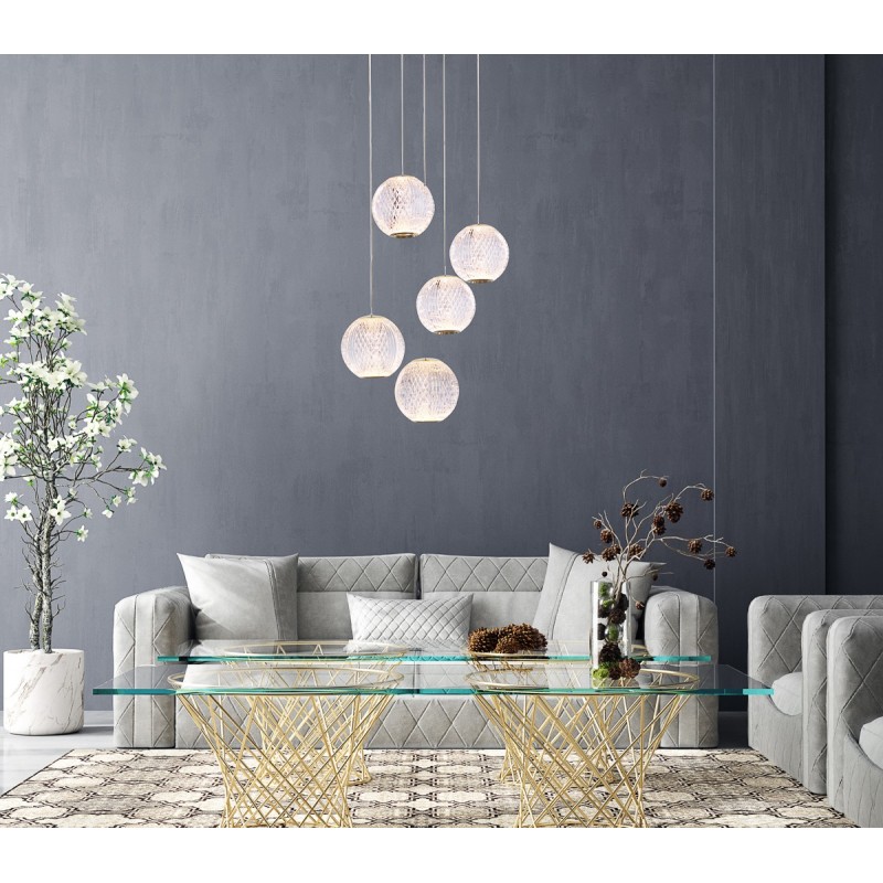 Lampa wisząca Rosario PND-12220121-5A-GD marki Italux to połączenie nowoczesnego designu z subtelną elegancją. Idealna do wnętrz takich jak salon, jadalnia, sypialnia czy przedpokój, nadaje przestrzeni wyjątkowego charakteru.